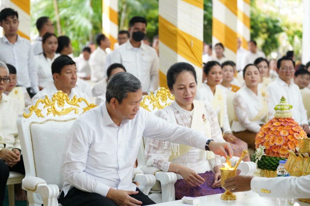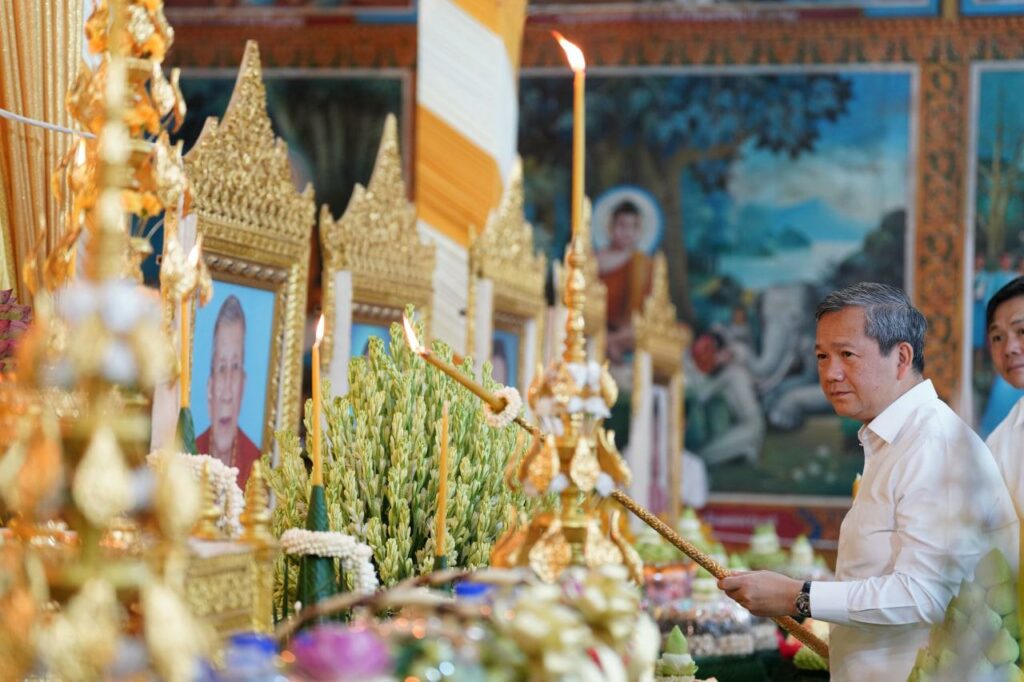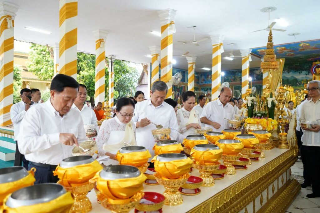 (កណ្ដាល)៖ សម្ដេចមហាបវរធិបតី ហ៊ុន ម៉ាណែត នាយករដ្ឋមន្ដ្រីនៃកម្ពុជា និងលោកជំទាវបណ្ឌិត ពេជ ចន្ទមុន្នី ហ៊ុនម៉ាណែត ព្រមទាំងឥស្សរជជាន់ខ្ពស់ជាច្រើនរូបទៀត កាលពីព្រឹកថ្ងៃទី២២ ខែកញ្ញា ឆ្នាំ២០២៥ បានអញ្ជើញរាប់បាត្រថ្ងៃភ្ជុំបិណ្ឌ នៅវត្តហរិរក្សរាជិនី ហៅវត្តវាំងចាស់ ស្ថិតក្នុងក្រុងឧដុង្គម៉ែជ័យ ខេត្តកំពង់ស្ពឺ។