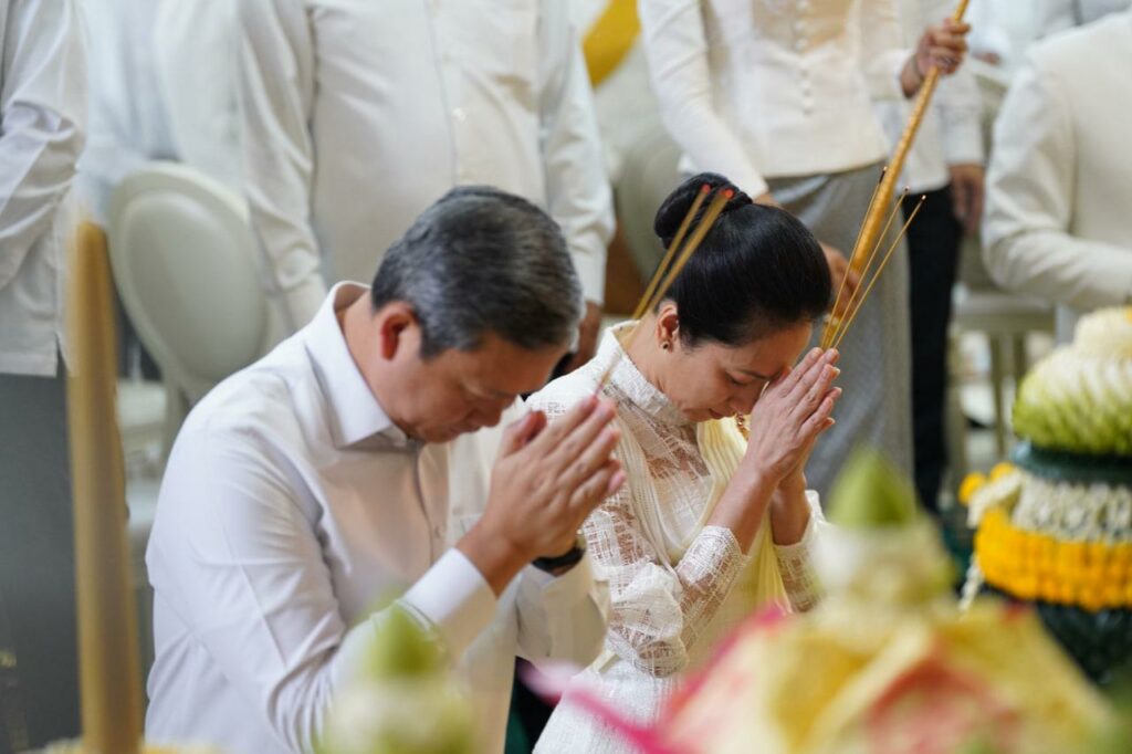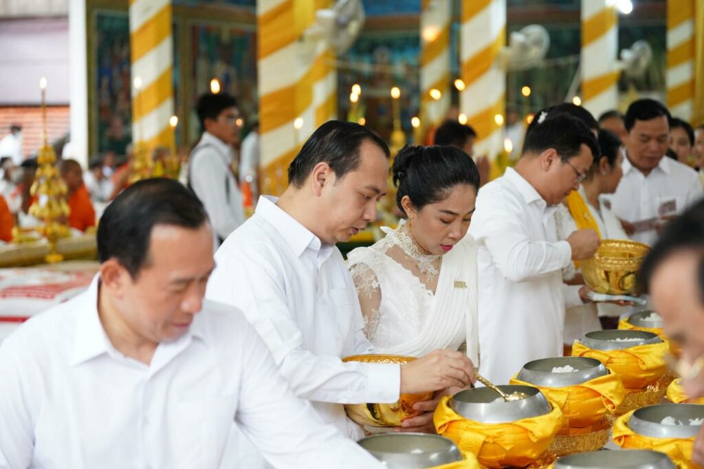 សម្តេចមហាបវរធិបតី និងលោកជំទាវបណ្ឌិត ព្រមទាំងឥស្សរជនជាន់ខ្ពស់ទាំងអស់ និងពុទ្ធបរិស័ទទីជិតឆ្ងាយ បានធ្វើបទនមសិកាព្រះរតនត្រ័យ សមាទានសិល៍ រំលឹកដល់ព្រះសម្មា សម្ពុទ្ធ ព្រះបរមគ្រួនៃយើង ដែលព្រះអង្គត្រាសដឹង នូវអនុត្តរះសម្មាសម្ពុទ្ធធិញាណ និងព្រះធម៌វិន័យដ៏វិសេសវិសាល បន្សល់ទុកឲ្យពុទ្ធបរិស័ទគ្រប់ជំនាន់ គោរពប្រតិបត្តិជារៀងដរាប រហូតមកដល់បច្ចុប្បន្ន និងទៅអនាគត។